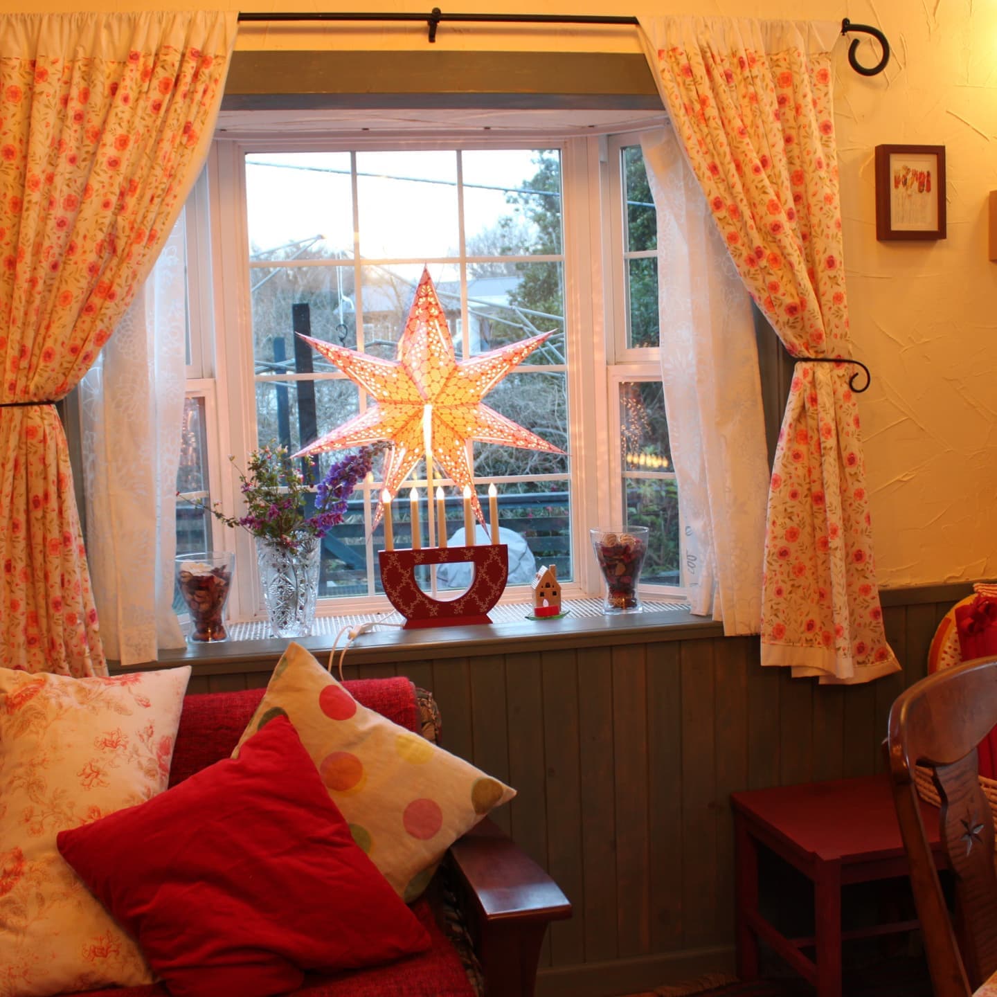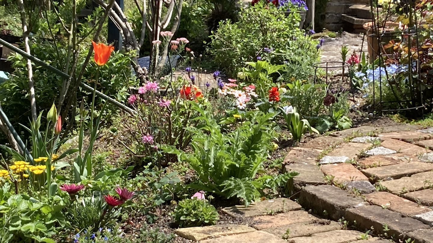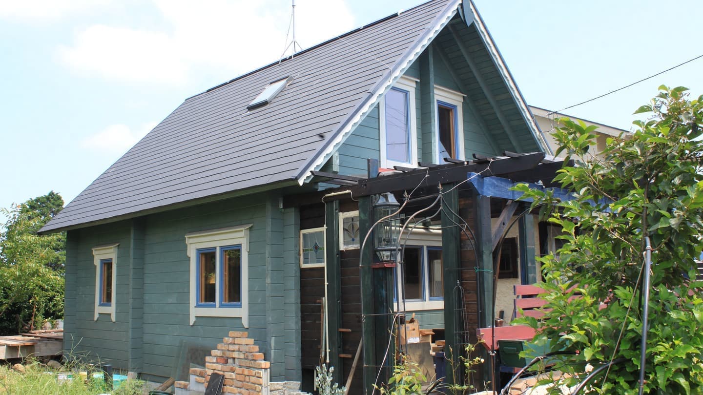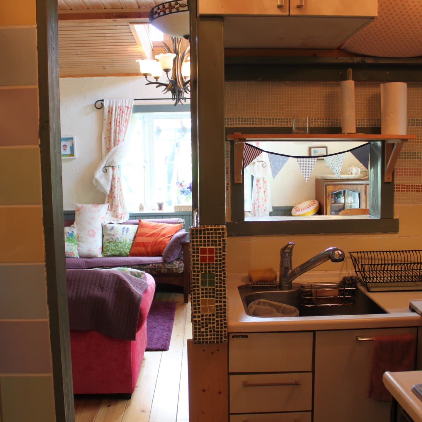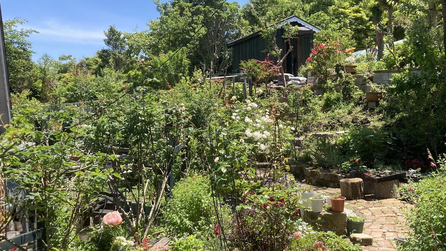 季節の庭を眺める双子のコテージです。1棟でも2棟貸切でも泊まれます。名前はワイルドストロベリー&ホリホック。