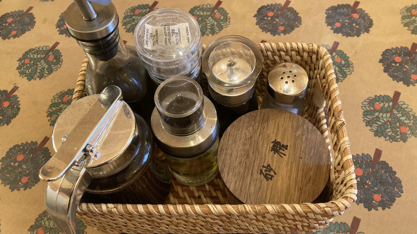 調味料セットレンタル(サラダオイル・オリーブオイル・ソース・醤油・胡椒・砂糖・塩) 500円(税込)